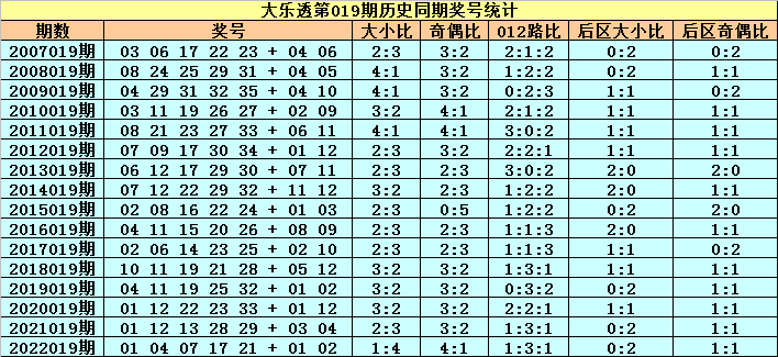 小王子大乐透第2023019期历史同时奖号属性分析: