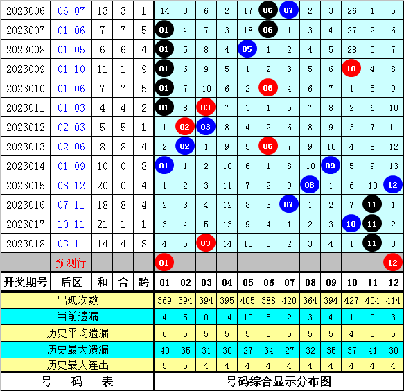 大乐透第2023019期5+2单注参考:01 04 15 22 28 + 01 12
